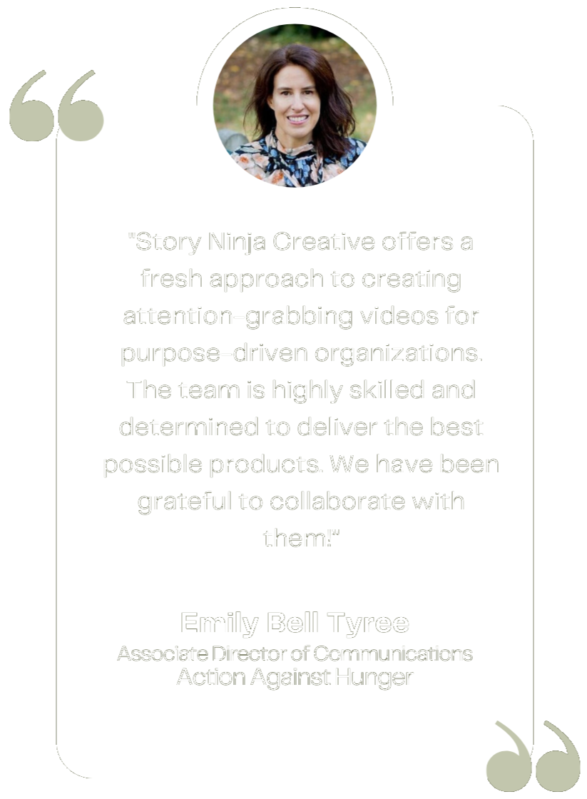 Story Ninja Creative is more than just a production company. We specialize in crafting compelling narratives that elevate charitable organizations.Connect with us to see how we're helping good people change the world.